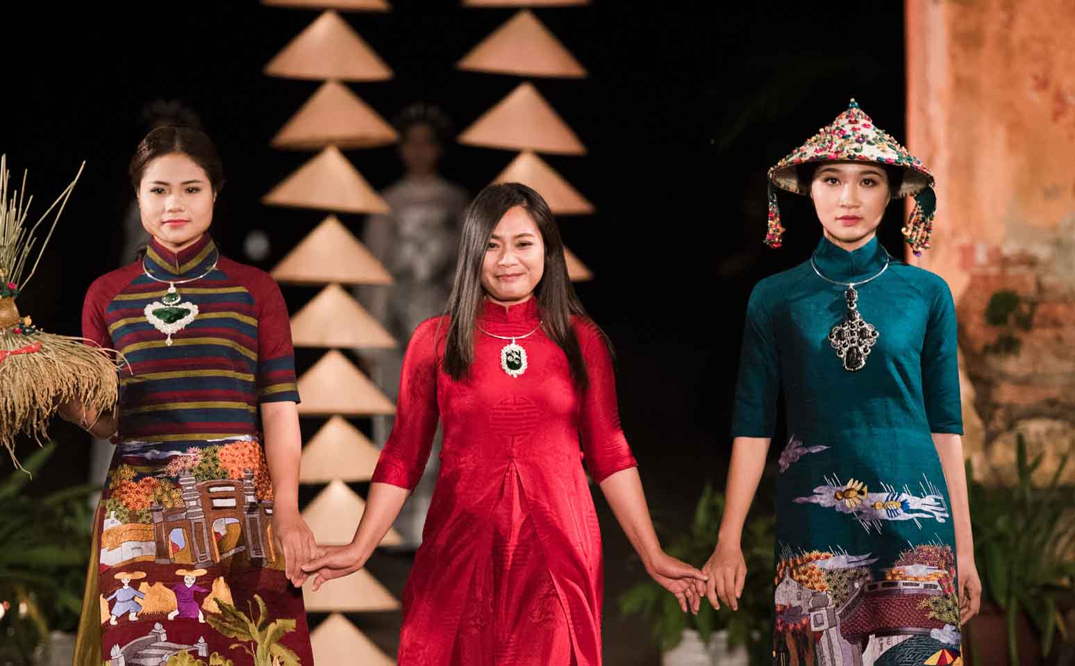 NTK Lan Hương với bộ sưu tập lấy ý tưởng từ tranh Đông Hồ và cổng làng Hà Nội thêu trên lụa.