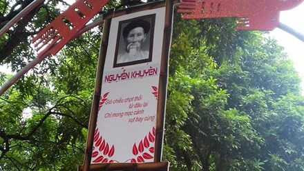 Pano về nhà thơ Nguyễn Khuyến bị nhầm với danh sĩ Phan Thanh Giản.