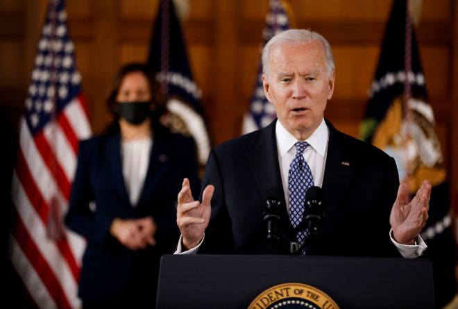Tổng thống Joe Biden phát biểu trong cuộc gặp với giới lãnh đạo cộng đồng người Mỹ gốc Á tại Georgia. (Ảnh: Reuters)