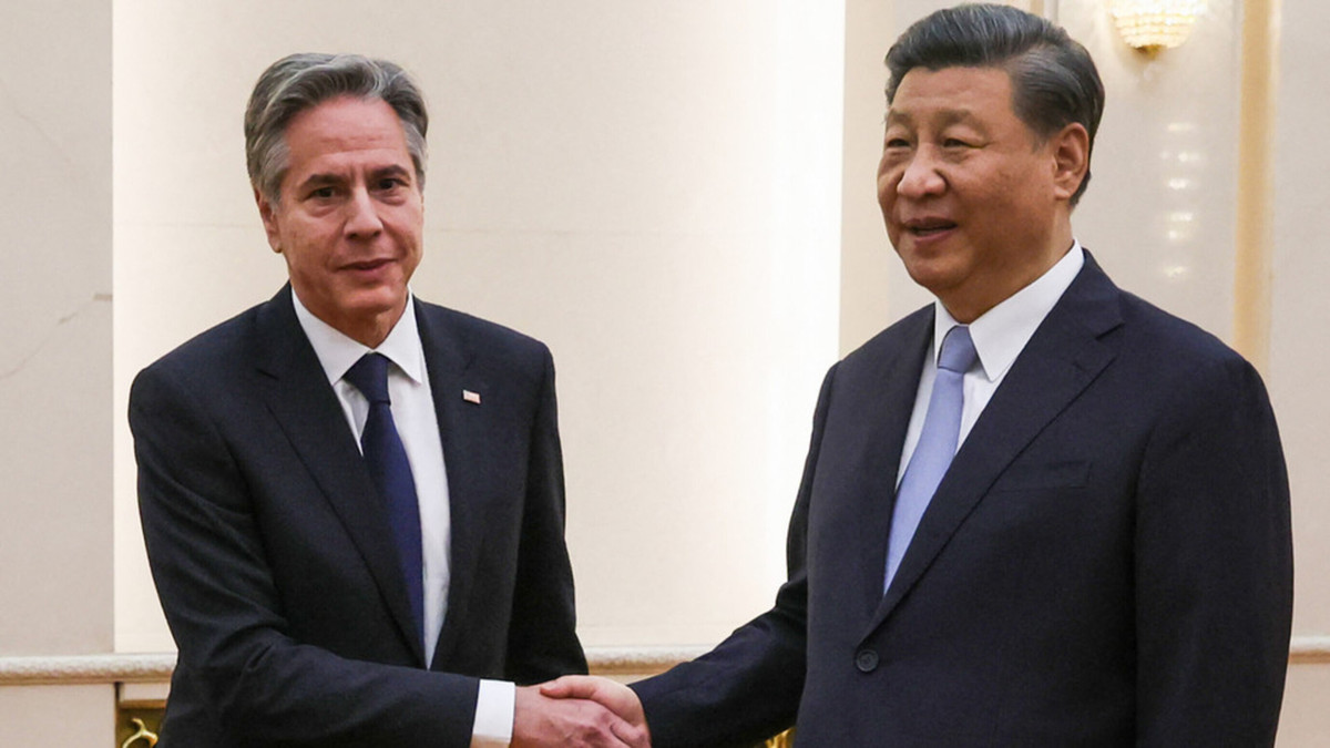 Ngoại trưởng Mỹ Antony Blinken bắt tay Chủ tịch Trung Quốc Tập Cận Bình. (Ảnh: Getty)