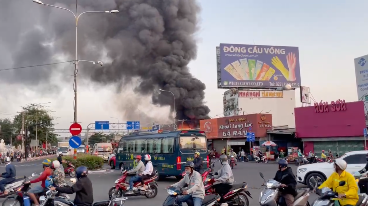 Sáng 1/3, ngọn lửa đỏ rực kèm theo khói đen bốc cháy dữ dội tại nhà xưởng chứa đồ gia dụng ở TP Thủ Đức. Khói lửa bao trùm cả khu dân cư khiến nhiều người hoảng loạn tháo chạy.
