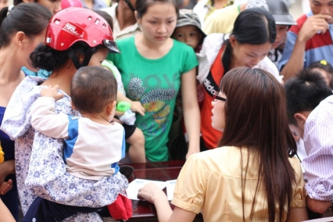 | Nhân viên Viettel hướng dẫn người dân khám bệnh |