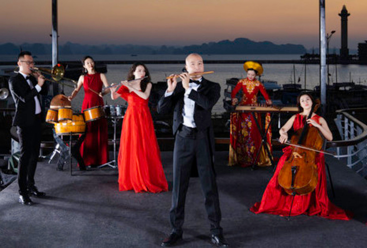 Nhạc trưởng Đồng Quang Vinh và dàn nhạc giao hưởng lần đầu biểu diễn ở vịnh Hạ Long.