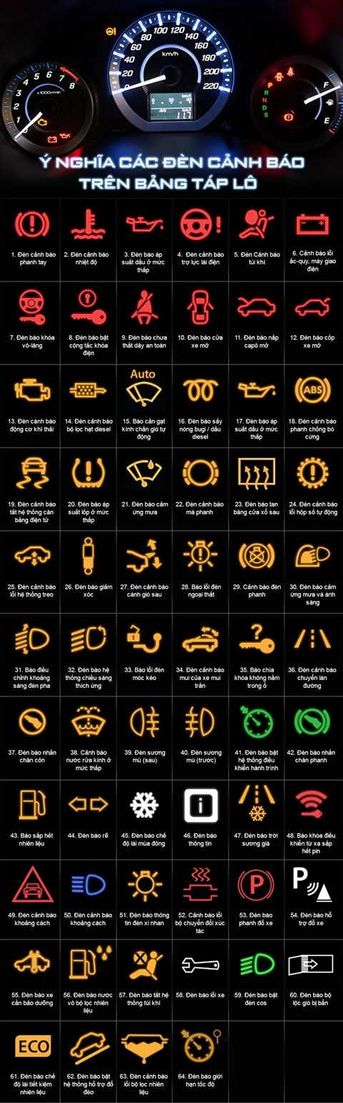 Hãng cứu hộ chuyên nghiệp Britannia (Anh quốc) đã tổng hợp 64 ký hiệu đèn báo phổ biến nhất trên bảng táp lô của các hãng xe hơi. Trong đó chỉ có 12 ký hiệu đèn là thường xuyên xuất hiện ở tất cả các mẫu xe.