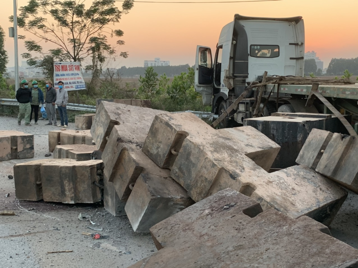 Qua điều tra, xác minh ban đầu, công an xác định khoảng 17h ngày 6/12, ông Vũ Đức Huy lái xe máy đi ngang qua đầu xe đầu kéo, thấy vậy tài xế Phạm Quang Huy đánh lái khiến nhiều khối bê tông xô vào nhau, rơi xuống và đè trúng nạn nhân.