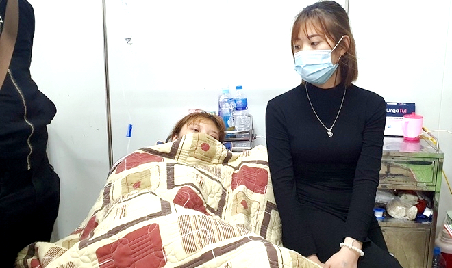 Nạn nhân B.T.T.M. (trái) được người thân chăm sóc ở bệnh viện. (Ảnh: Hoàng Lam)