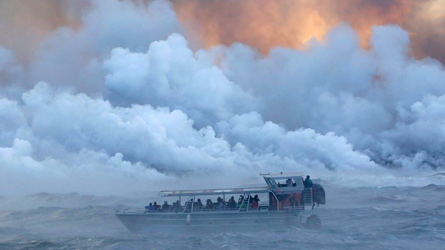 Một con tàu du lịch chở du khách tham quan gần núi lửa Kilauea, Hawaii. (Ảnh: Reuters)