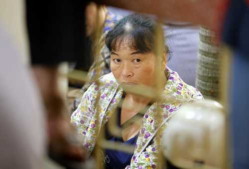 | Không được vào trong, bà Chiến đứng ngoài theo dõi phiên xử qua loa phóng thanh - (Ảnh: Phạm Hải) |