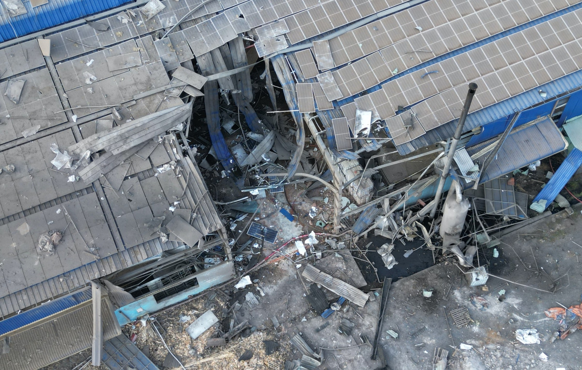 Hiện trường tang hoang của vụ nổ lò hơi.