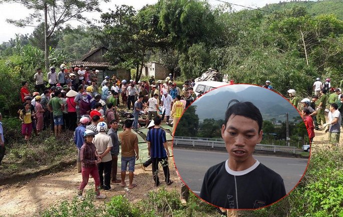 “Sau va chạm, tôi nghe hai tiếng nổ lớn, có lẽ là tiếng nổ của lốp xe. Sau đó cả 2 xe lao xuống suối, tôi chạy ra thấy chiếc xe 16 chỗ bị xe bồn tông nát, đồ đạc văng tung tóe, thi thể người nằm la liệt. Tôi và mọi người sợ quá gọi điện báo công an.