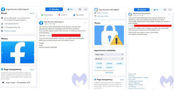 Theo ghi nhận của Malwarebytes, những trang hỗ trợ này thực chất là fanpage của các doanh nghiệp vừa và nhỏ nhưng đã bị hacker chiếm đoạt, sau đó thay đổi các thông tin như một trang hỗ trợ của Facebook để lừa đảo người dùng.