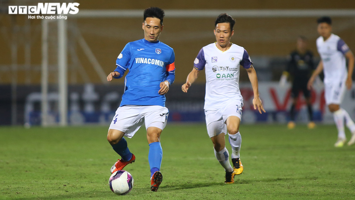 Than Quảng Ninh (áo xanh) bị ngắt chuỗi toàn thắng trước Hà Nội FC.