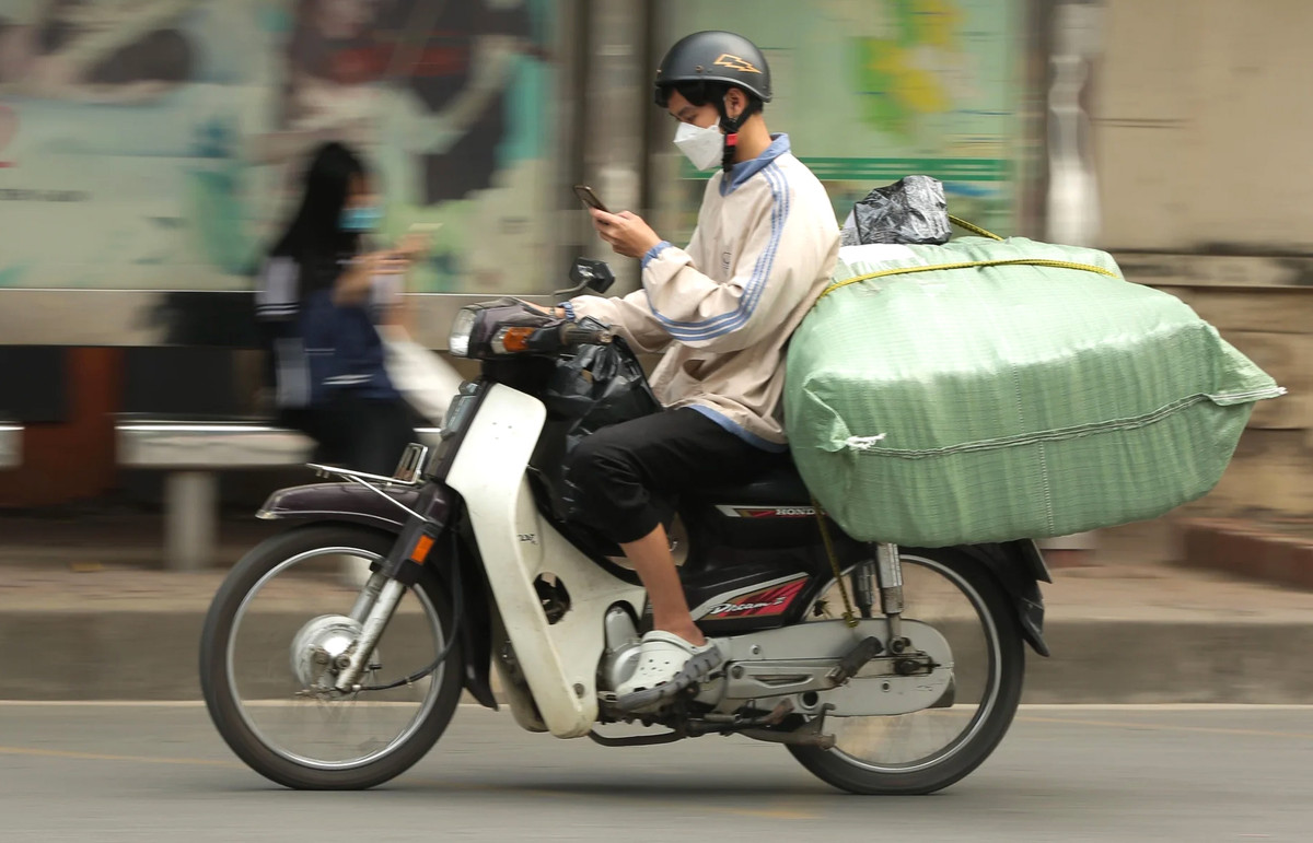 Trên các tuyến phố ở Hà Nội, rất nhiều người đi xe máy nhưng tay vẫn cầm điện thoại, còn mắt "dán chặt" vào màn hình thay vì chú ý quan sát xung quanh.