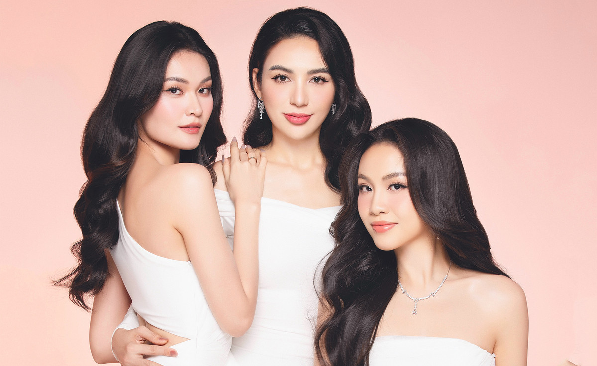Nhân dịp ngày kỷ niệm của trường Đại học Ngoại thương, Hoa hậu Ngọc Diễm cùng Á hậu Thuỳ Dung và Thuỷ Tiên thực hiện bộ ảnh chung.