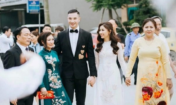 Con gái Chủ tịch CLB Thanh Hóa có gương mặt xinh đẹp, dù chiều cao không nổi bật. Bảo Uyên từng có khoảng thời gian du học ở Anh. Chính vì thế, cô thích đám cưới phong cách châu Âu lãng mạn, được trang trí nhiều hoa tươi.