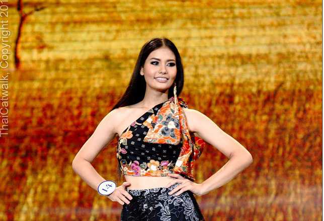 | Chiều cao 1,69m, làn da nâu khỏe khoắn, nữ sinh viên trường Đại học Mahasarakham được ban giám khảo đánh giá cao. Cô cũng sinh trưởng trong gia đình có truyền thống sắc đẹp khi mẹ cô từng là Hoa khôi Songkran. |