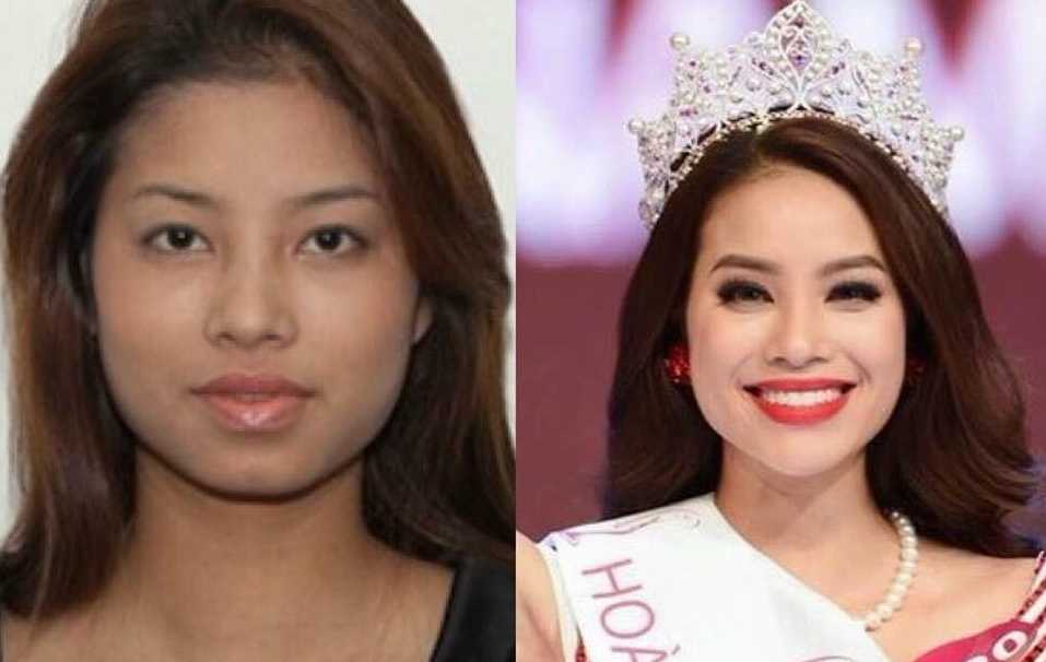 Nhan sắc của Phạm Hương từ thuở mới vào nghề khá khác so với thời điểm hiện tại - khi Phạm Hương đăng quang Hoa hậu hoàn vũ Việt Nam 2015.