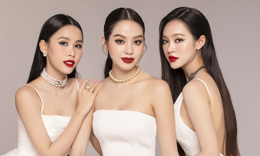 Nhan sắc rực rỡ của cả ba cùng hội ngộ qua bộ ảnh mới, mỗi người một vẻ không ai kém cạnh ai. Các cô gái đã lựa chọn tông son đỏ khi kết hợp với những trang phục thanh lịch nhưng không kém phần gợi cảm và sang trọng.