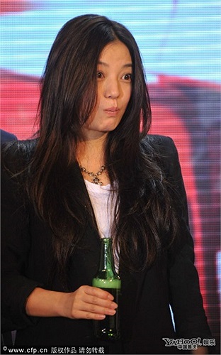 Dù vẫn giữ được nụ cười tươi nhưng khuôn mặt bóng nhẫy của Triệu Vy khiến nhiều người không mê nổi.