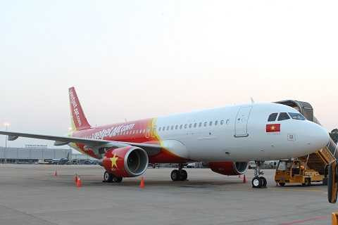 (VTC News) - Chiếc tàu bay A320 thứ ba trong đơn hàng mua và thuê 100 tàu bay theo thỏa thuận được ký kết giữa Vietjet và Airbus đã về đến sân bay Tân Sơn Nhất (TP.HCM) vào lúc 17h30 hôm qua. Tàu bay Airbus A320 mới về nâng số lượng đội máy bay của Vietjet lên 21 chiếc ngay trong mùa cao điểm Tết Nguyên đán để phục vụ cho các nhu cầu đi lại tăng rất cao của hành khách.