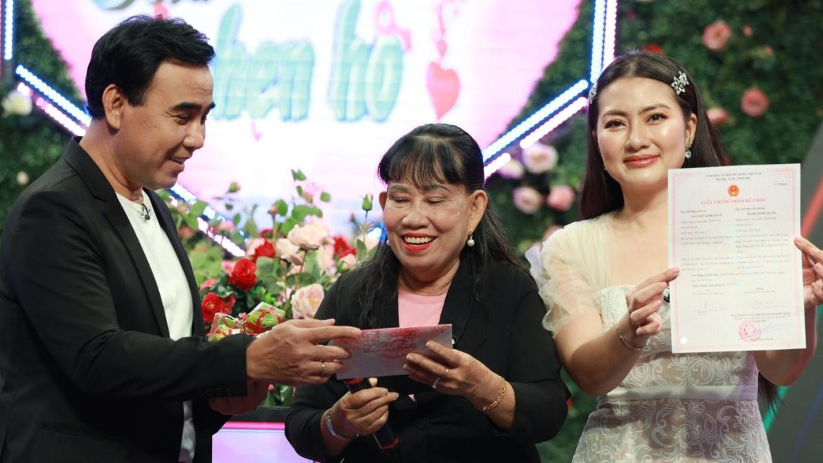 Cô hài hước cho biết: “Con trai tôi kén dữ lắm, 42 tuổi rồi mà giới thiệu ai cũng không chịu. Vậy mà tôi đăng ký cho đi chương trình một cái là có vợ luôn. Ai cũng mừng cho con trai tôi với bất ngờ sao từ lúc được mai mối tới lúc kết hôn nhanh quá. Giờ nhiều người nhờ tôi đăng ký giùm lắm. Trên chương trình Quyền Linh nói câu ‘Tôi khoái nhà trai tôi quá’ mà về cả nhà coi chắc chục lần!”