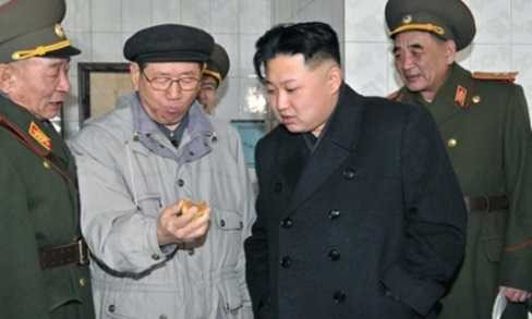 | Ông Hwang Pyong-so (thứ 2 từ trái sang) đứng cạnh chủ tịch Triều Tiên Kim Jong-un và các quan chức quân đội |