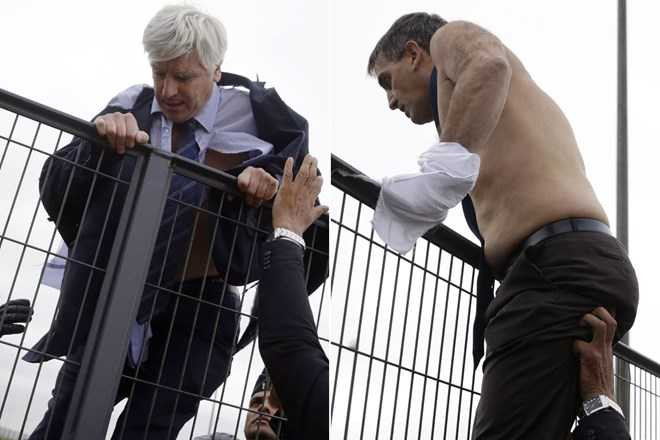 | Hai lãnh đạo Air France phải trèo rào để trốn đám đông biểu tình quá khích |
