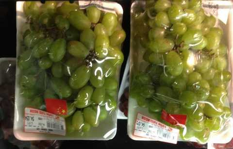 Tại sạp bán nho của siêu thị Big C the Garden (Mỹ Đình, HN), khách hàng đã phát hiện những hộp nho bên ngoài niêm yết giá có dòng chữ ghi Made in Vietnam, nhưng bên trong lại dán cờ… Trung Quốc.