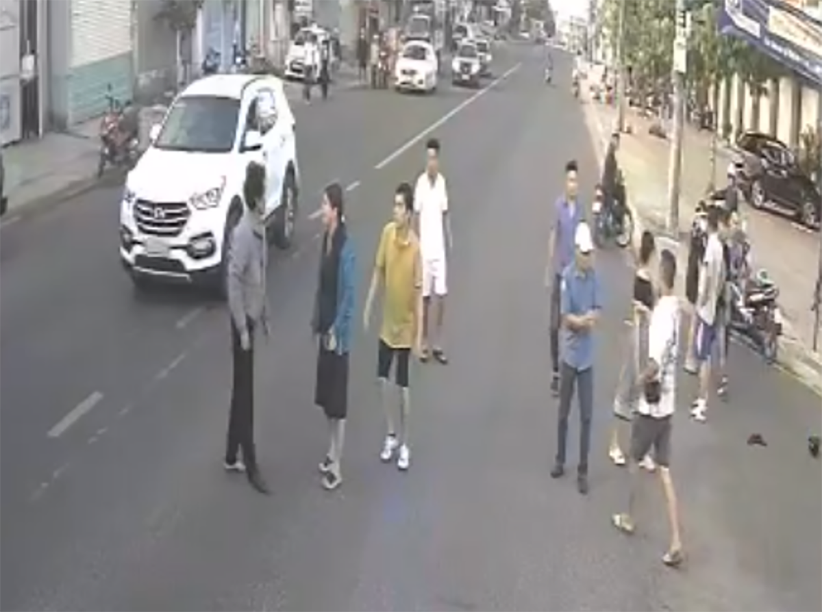 Lúc này có 2 người đàn ông (ông P.V.M. và anh N.V.D. – PV) xuất hiện, yêu cầu giữ nguyên hiện trường để gọi công an tới giải quyết nên hai bên xảy ra xô xát, ông đó (ông M. - PV) đòi đánh tài xế nên tài xế đã đánh lại.