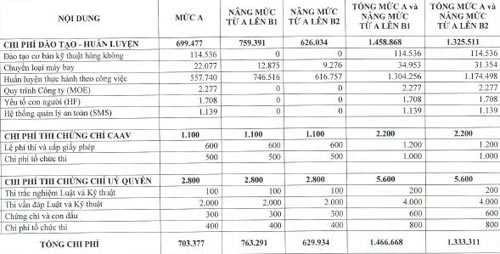 Theo bảng tính toán của VAECO được người lao động cung cấp, chi phí huấn luyện cho một nhân viên hạng A (thấp nhất) tốn hơn 700 triệu đồng.