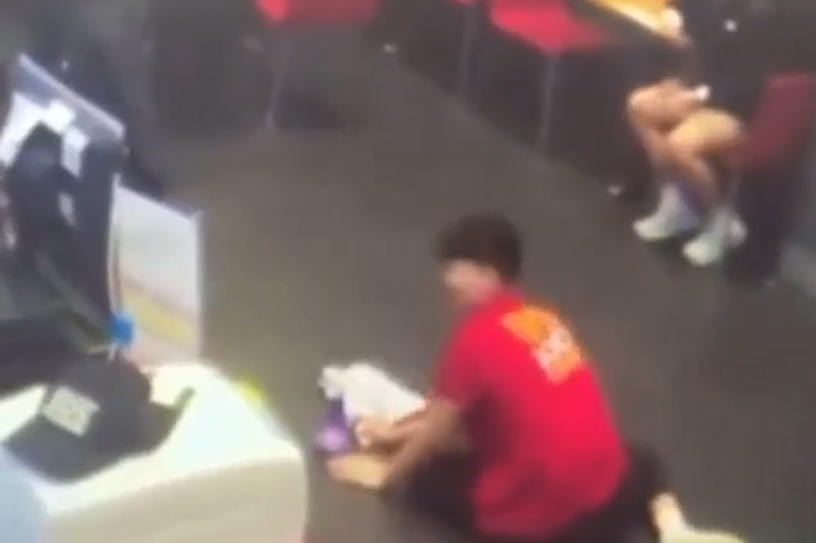 Nhân viên hậu đậu ngã liên tục giữa nhà hàng