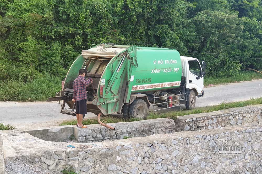 Hai nhân viên công ty môi trường không mặc đồng phục và xe thu gom rác có tới 2 BKS là 14C - 270.08 và 29C - 643.03. "Ngày nào tôi cũng để ý thấy xe rác này chạy ra đây đổ trộm nước thải. Có hôm tôi đến hỏi thì nhân viên môi trường không nói gì rồi lái xe đi chỗ khác", ông L.V.T (trú thị trấn Cô Tô) bức xúc.