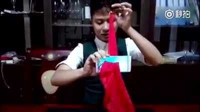 Nam nhân viên phục vụ điển trai tiết lộ bí quyết sau màn ảo thuật thú vị với khăn tay và một chiếc smartphone khiến người xem thích thú.
