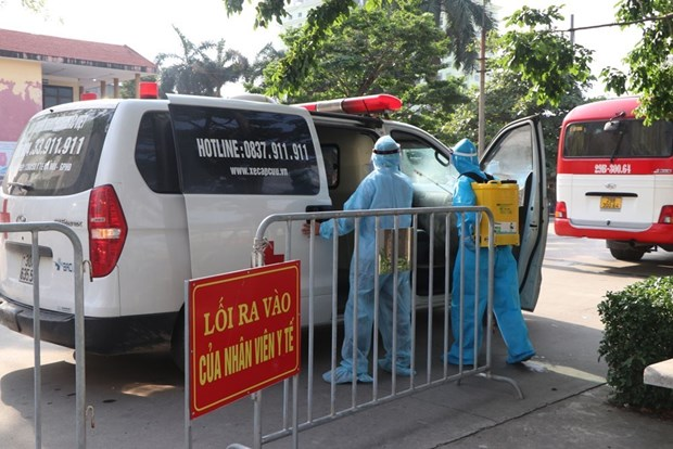Rạng sáng 20/8, bệnh viện tổ chức phun khử khuẩn xe cứu thương, khu vực khoa Cấp cứu, phòng khám cách ly, thi hài người bệnh.