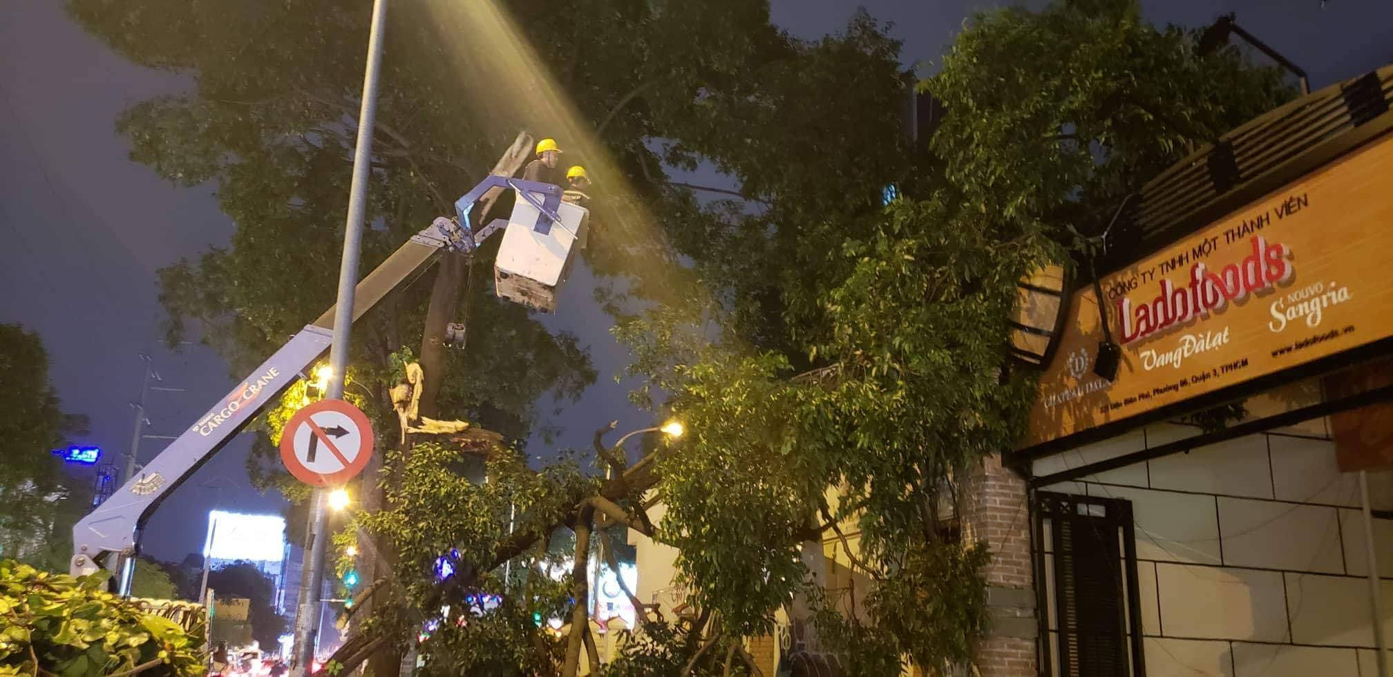 Tối 13/10, khi trời vừa hết mưa, một nhánh cây lớn đường Điện Biên phủ, quận 3, TP.HCM đã gãy và đè sập một bức tường nhà dân.