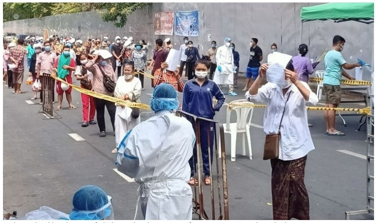 Xếp hàng chờ xét nghiệm COVID-19 ở Campuchia.
