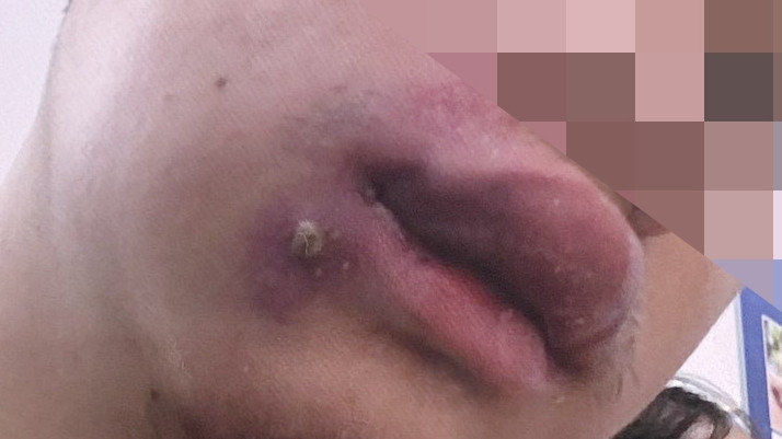 Có mụn ở mép môi dưới bên má trái, nam thanh niên 19 tuổi ở Hà Nội đã tự nặn mụn, sau đó sốt 38 độ, có gai rét và cơn rét run, ở nhà tự dùng hạ sốt, không đỡ. Bệnh nhân được gia đình đưa đến Bệnh viện Trung ương Quân đội 108 trong tình trạng sốt cao 38 - 38.5 độ, có cơn rét run, môi khô, vùng môi má bên trái sưng nề, chảy dịch mủ, há miệng hạn chế, khó thở nhẹ, đau tức ngực, hỗ trợ thở oxy gọng kính.