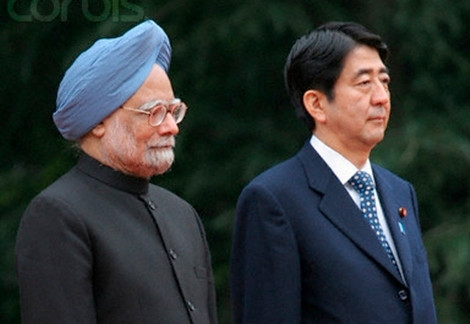 | Thủ tướng Ấn Độ Manmohan Singh (trái) và Thủ tướng Nhật Bản Shinzo Abe |