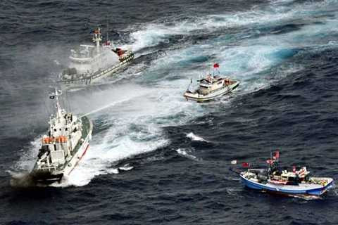 | Tàu cá Đài Loan và tàu công vụ Nhật Bản đấu vòi rồng trên biển năm ngoái - Ảnh: RT |