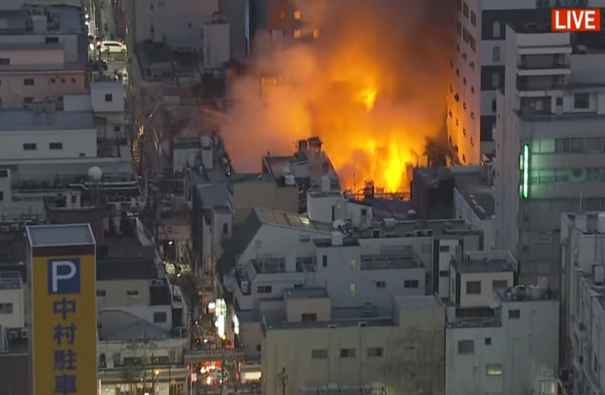 Đám cháy bùng lên dữ dội từ khu mua sắm Uomachi Gintengai. (Ảnh: NHK)