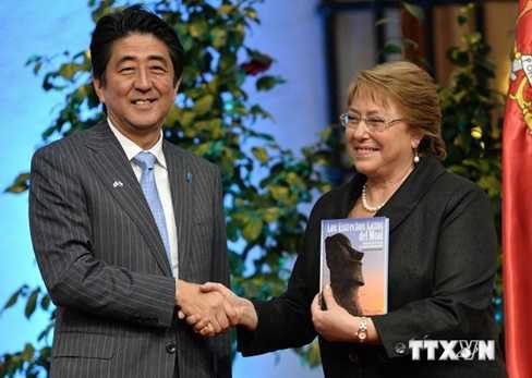 | Tổng thống Chile Michelle Bachelet (phải) có cuộc gặp với Thủ tướng Nhật Bản Shinzo Abe (trái) tại Santiago, Chile |