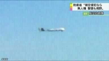 Theo Đài truyền hình NHK của Nhật Bản, Cục phòng vệ Nhật Bản nói nếu máy bay không người lái của Trung Quốc ‘xâm phạm không phận của Nhật’, uy hiếp đến sự an toàn của Nhật Bản, nước này sẽ tính đến việc bắn hạ.Ngày 9/9, Cục phòng vệ Nhật Bản xác nhận việc một máy bay không người lái chưa rõ quốc tịch bay gần khu vực đảo Senkaku/Điếu Ngư. Qua hình ảnh mà do các máy bay chiến đấy chụp được, Nhật Bản xác định, chiếc máy bay này thuộc quyền sở hữu của quân đội Trung Quốc.