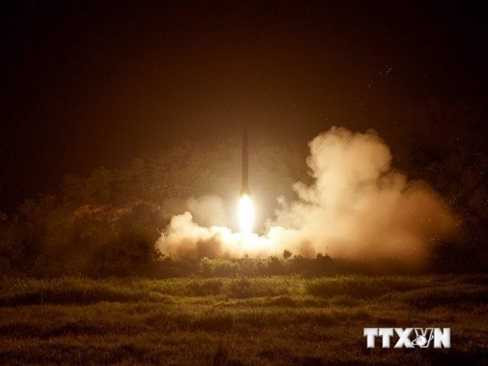 | Quân đội Triều Tiên diễn tập bắn tên lửa chiến thuật mới tại khu vực phía Tây nước này (Ảnh minh họa ) |