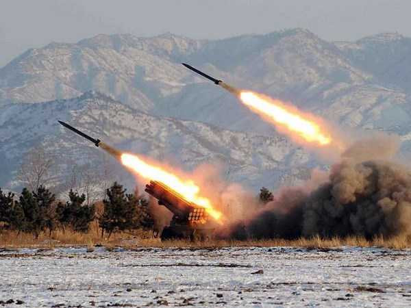 | Quân đội Triều Tiên bắn tên lửa trong một cuộc tập trận |
