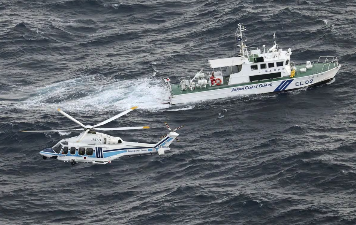 Tàu và trực thăng cảnh sát biển Nhật Bản tiến hành hoạt động tìm kiếm cứu nạn tại địa điểm máy bay quân sự V-22 Osprey của Mỹ rơi xuống biển ngoài khơi đảo Yakushima, tỉnh Kagoshima, Nhật Bản. (Ảnh: Reuters)