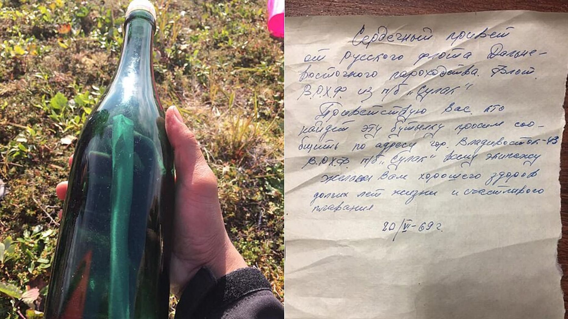Tyler Ivanoff phát hiện chai thủy tinh mang thông điệp viết bằng tiếng Nga này khi đi bộ dọc bãi biển của hòn đảo Sarichef, bang Alaska, Mỹ.