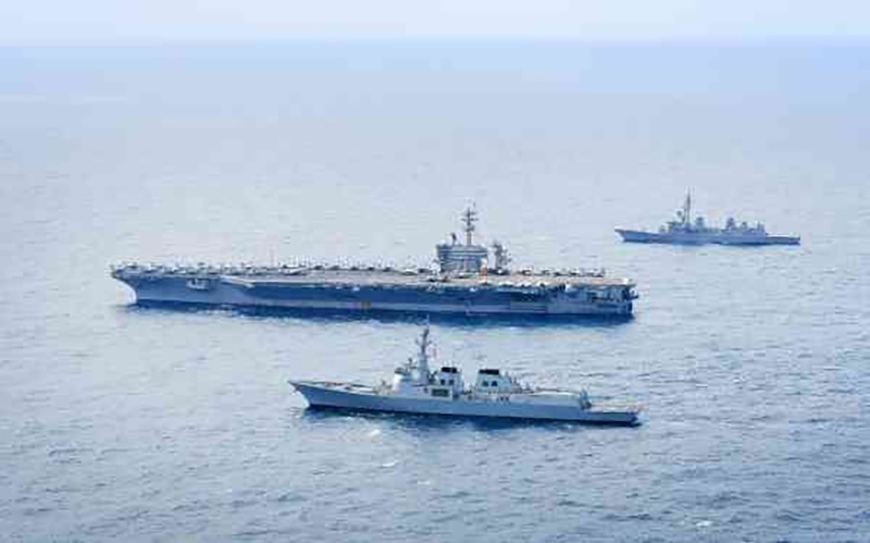 Theo Đài KBS, 3 nước huy động tổng cộng 6 tàu chiến tham gia tập trận chung. Trong đó, Hải quân Hàn Quốc điều động khu trục hạm Seoae Ryu Seong-ryong, trong khi Hải quân Mỹ bố trí tàu sân bay Theodore Roosevelt, tàu khu trục Howard và Daniel Inouye và Russell. Lực lượng phòng vệ trên biển Nhật Bản cử tàu khu trục Ariake.