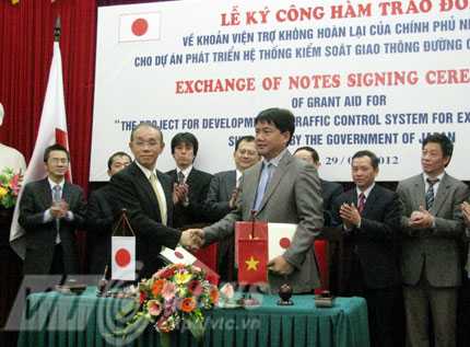 Bộ trưởng Đinh La Thăng cùng Đại sứ đặc mệnh toàn quyền Nhật Bản ký kết Công hàm viện trợ.