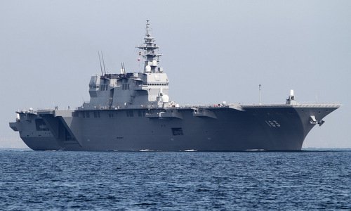 JS Izumo là một trong hai chiến hạm lớn nhất của Nhật hiện nay. Tàu dài 248 m, có lượng giãn nước đầy tải 27.000 tấn và mang được 14 trực thăng. Chính phủ Nhật Bản hồi năm ngoái công bố kế hoạch hoán cải hai khu trục hạm trực thăng lớp Izumo thành tàu sân bay, cho phép giúp chúng vận hành tiêm kích tàng hình F-35B mua từ Mỹ.