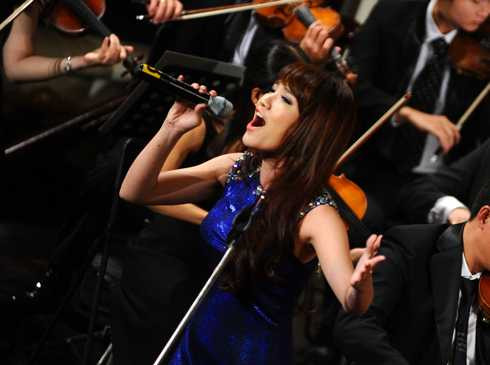 | Nhật Thủy tự tin trình diễn với dàn nhạc giao hưởng |
